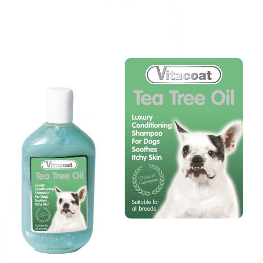 Champú especial para perros y gatos con pieles sensibles, producido a base de aceite de árbol de té.